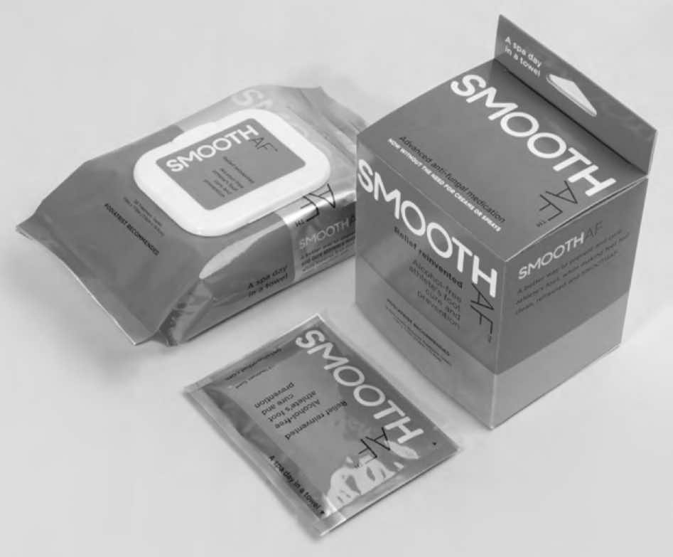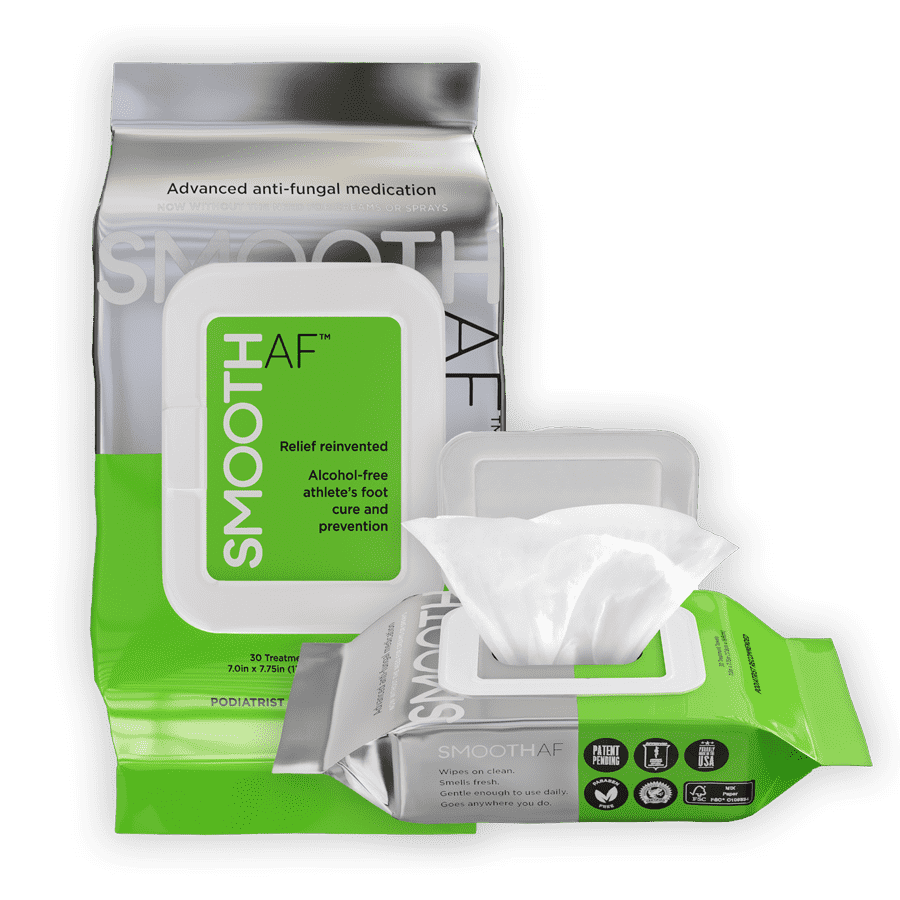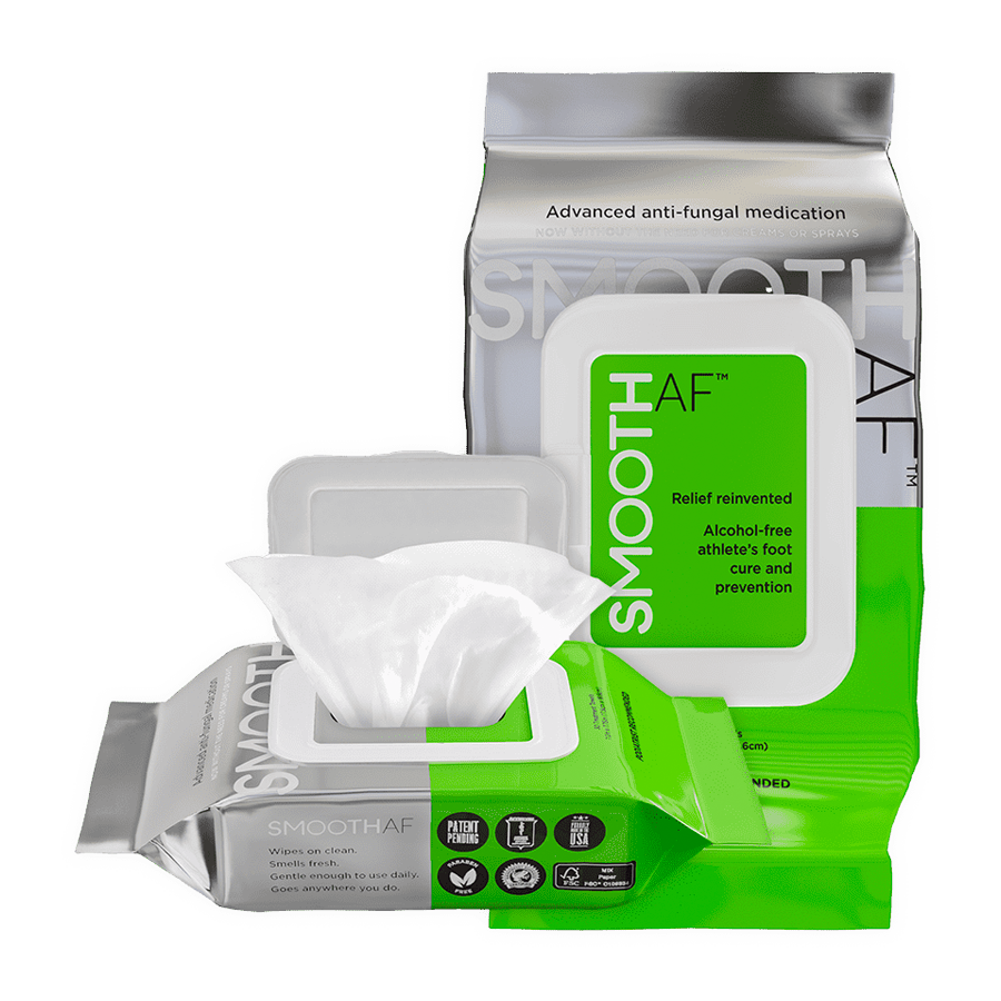 Smooth AF's revolutionary alcohol free formula is in a league of its own. Non-greasy, paraben free wipes, that hydrate and replenish skin.Proven Anti-Fungal Tolanftate